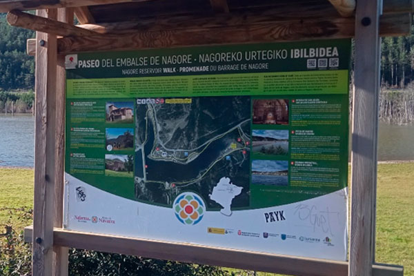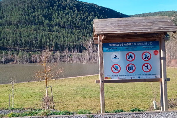 El área de baño se encuentra a orillas del Pantano de Nagore, un embalse rodeado de montes y praderas que ofrece un paisaje muy abierto y agradable. El acceso al agua es progresivo y suele ser adecuado para familias con niños, lo que convierte este lugar en una alternativa muy popular para refrescarse en verano sin alejarse demasiado de la Selva de Irati.